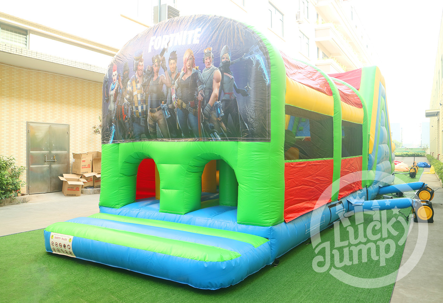 Corsa ad ostacoli gonfiabile a tema Fortnite per un divertimento definitivo
